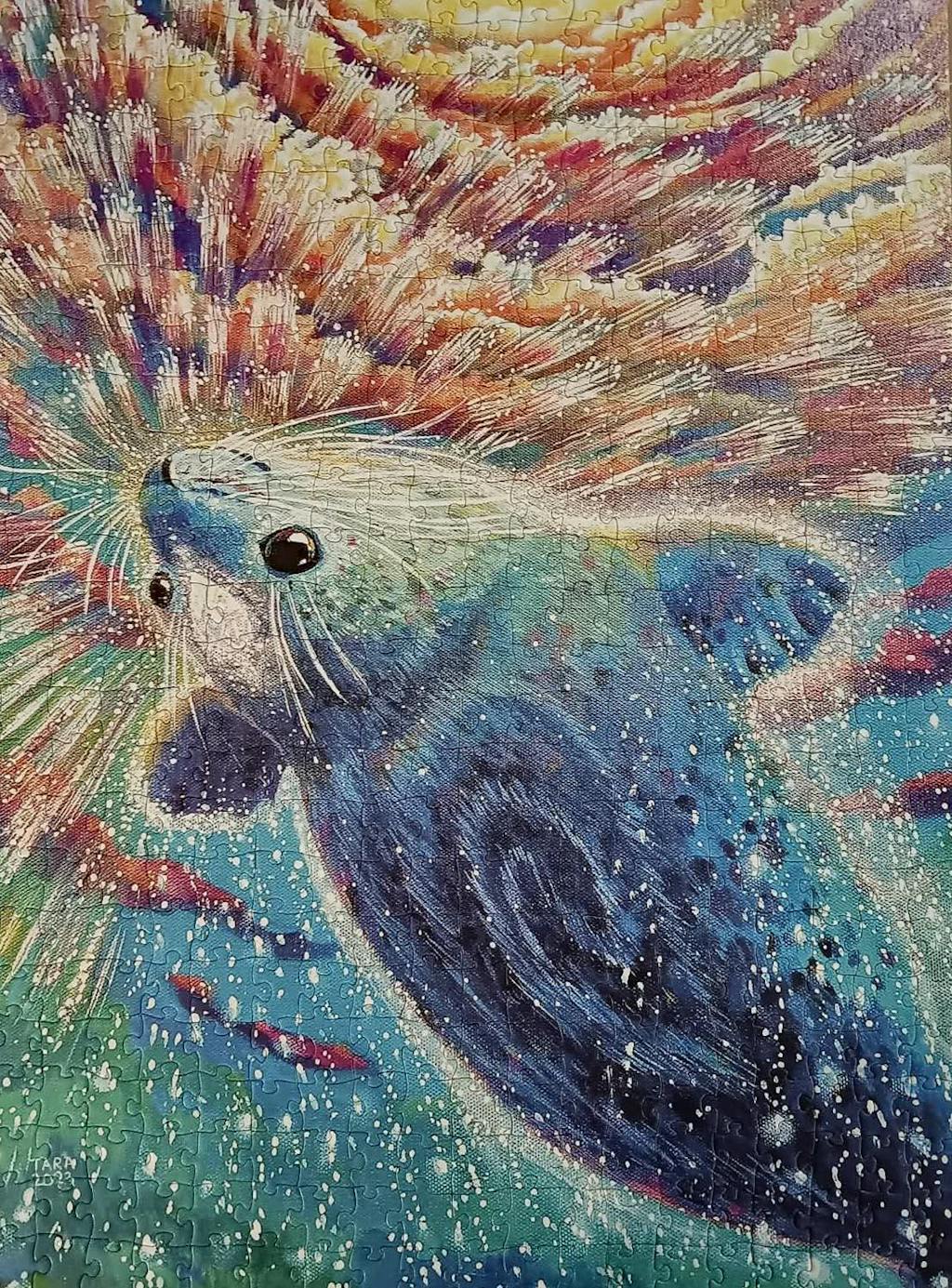 Puzzling this vibrant seal is an absolute delight; the flowing gradients and playful patterns evoke the spirit of these graceful marine animals. Each piece reveals more of ocean life's beauty, transforming the experience into both an immersive and artistic journey.